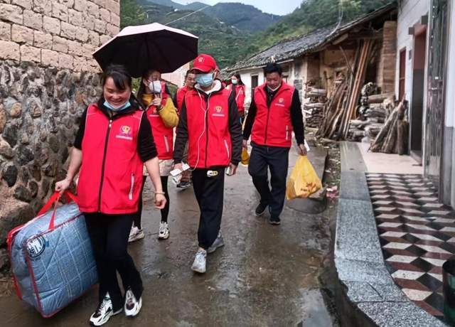 图:志愿者冒雨下乡走访