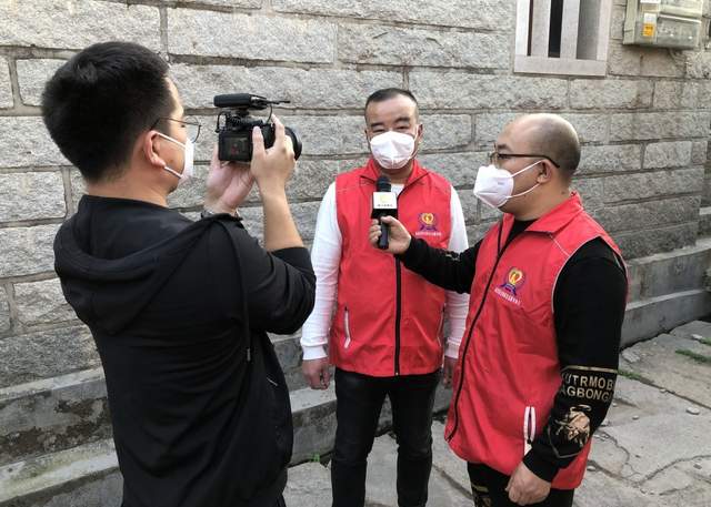 图:林伟明(中)接受电视台记者采访