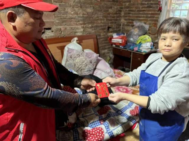 图:志愿者送上慰问金