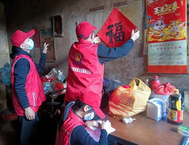 福建省扶老救孤公益服务协会副会长曾新龙,志愿者尚碧、曾子彦、曾素芬、曾思颖、曾辰林、曾谢水、曾连清、曾根铫、曾丽斌、曾坤铭、曾春燕、朱清泽、朱翰昌、朱炳茂、杨美球等人参加了本次走访慰问活动。除了送上饮食用品、生活物资与慰问金,志愿者们还帮助这些家庭贴上春联与福字,让老年人的居所焕然一新。