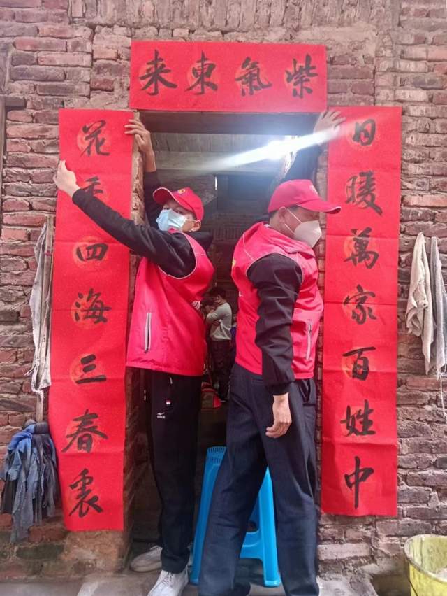 书法家曾庆明义务为这些特困家庭书写春联与福字,由志愿者帮助张贴在他们家里门上,增添过年过节的喜庆气氛,表达热烈的问候与美好的祝福。(姚逸宁)
