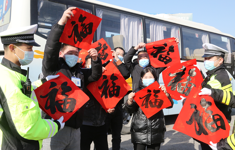 “您好,送您一个福字,开车注意安全……”“祝春节快乐,出行平安。”1月17日上午,在河北省沧州市开发区路口,机动车驾驶员和过往群众意外收到了河北省沧州市公安交警支队二大队执勤交警送上的大红“福”字,每个人脸上挂满了笑容。