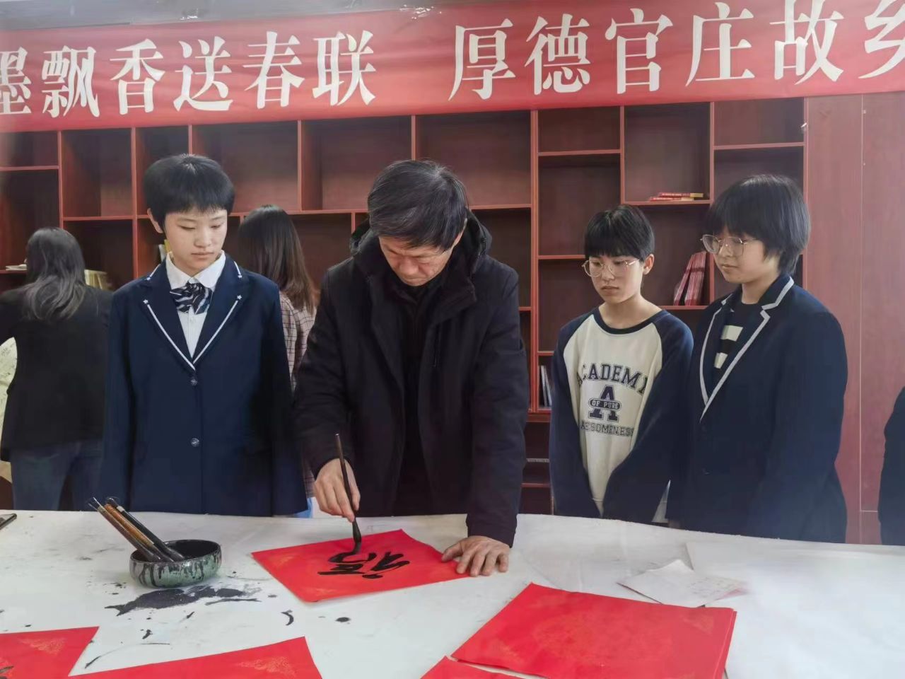 俗话说,文以载道,武以修身。在体验过中国武术的魅力后,第五中学的师生们又来到沧州渤海新区、黄骅市官庄乡人民政府,在“书法之乡”接受书法文化的洗礼。活动现场,翰墨飘香,学生们在官庄乡书法协会老师的指导下,挥毫泼墨,展示书法学习成果,用一副副喜庆的大红春联表达对新春的祝福。随后,师生们来到沧州渤海新区、黄骅市齐家务镇古贡枣园,参观百年古树,感受家乡文化的魅力。