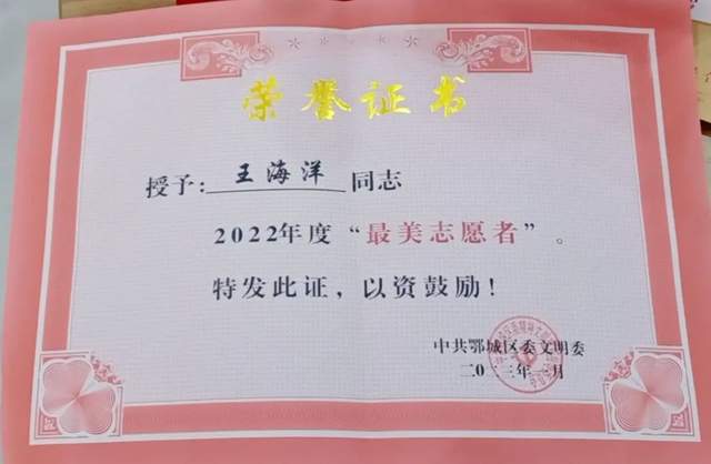 “最美志愿者”的王海洋老师。