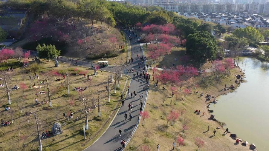 据了解,客家文化公园樱花种植面积大约有2万平方米,盛花期将会持续到三月份。未来,我市园林部门还将计划引进、驯化外来新优的园林观花以及彩叶植物,进一步打造客家文化公园四季花海景观。
