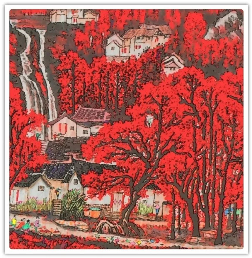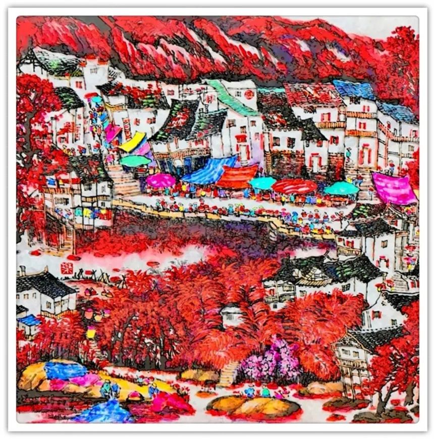 在笔墨的技法表现上,叶穗琼女士是有去极力的对标于时代风范,正如画坛常言那般,恰是笔墨当随时代!不仅如此,得益于她本人对于自然美学的高度参悟,其笔墨和赋色之间的相互交融也是有得到了全面的美感升华,一幅山水民居画作中,是有重色层染之密润,也见点线呼应之交集,前者是以浑然色感而呈气象,后者则是以疏密变化而立风骨,如此一来,便就能使所绘丹青成功突破于大众化的单一格局,力避匠气,不入俗流,取而代之的则是一种以时代精神和墨色交融所最终形成的新自然气象!视觉质感,妙韵绝伦!