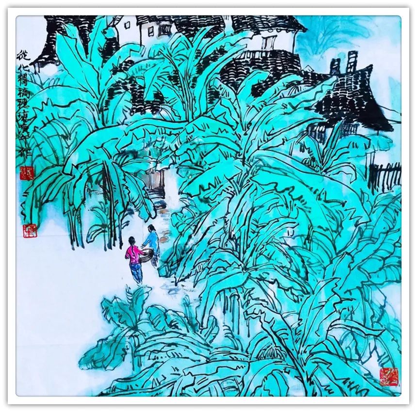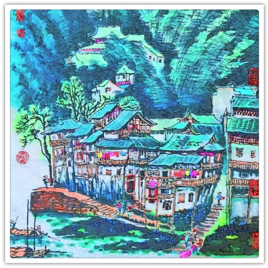 而在画面的境界流露和取景图式上,叶穗琼女士则又是有展现出了一种人文蕴藉的内涵感,和赋色的重意浑然不同,这种内涵感的形成并非是来自于技法的表现,而是来自于叶穗琼女士本人多年来的写生积淀和心迹共情!在画风上追求高山流水的隐世感,在精神上又尚求淳朴平静的宜居感,山水盎然,民居调心,而这一幅幅风情雅逸的丹青艺术画境,也已然都是有被叶穗琼女士的笔触抒发到了极致!清秀于景,畅怀于心,可品可赏,可游可居!