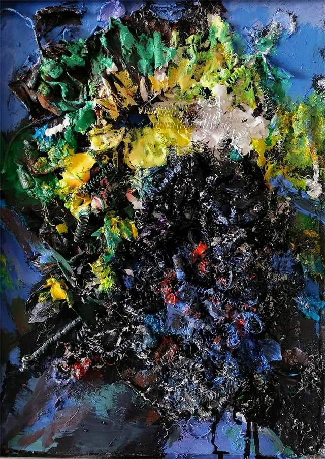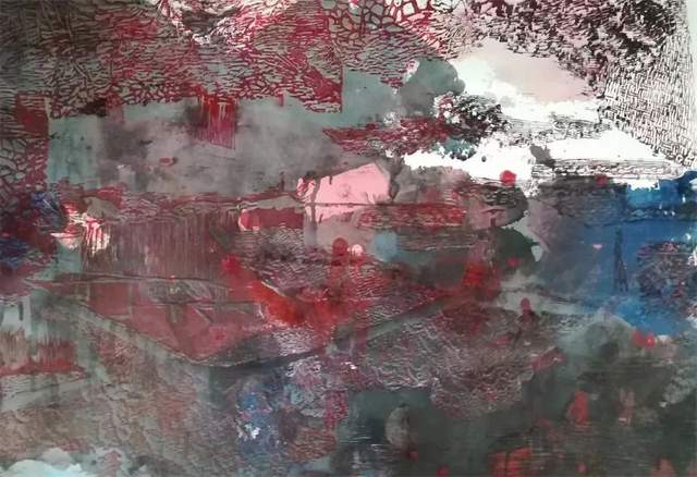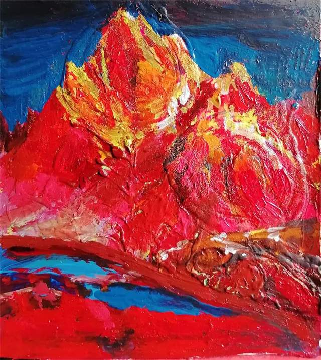 任何艺术家的立世之作都与表达正能量的社会发展与文明进步相关联,或是在观念突破思维解放语言拓展中进行的艺术创造。除此之外,则可能平庸俗套无奇。萎靡颓废私欲的小我,挪用摹仿拷贝的重复,均属江河岸边的逆流水洼,它与艺术主潮大流无涉。艺术家融入时代,与发展主潮同步共振,把握艺术创造前沿课题深入实践,作品涣发出的精气神自然是艺术家宽广文化胸怀和深度艺术理念的体现。作为画家,刘锋援宁支教之举值得敬佩,大爱情怀已然在作品中丝丝缕缕折射出来。刘锋从秀美的东南沿海转身处于雄莽的西北地域,新环境产生的人生体验和文化感受,在艺术表达中,无疑传达出了一种从未有过的生命感悟和精神触角,画面更有张力,蕴含更有深度。正因为刘锋涉及多个画种,因此,在几类作品中,综合材料系列似乎更为新颖抢眼。综合材料不是材料堆砌,正如漆画不以漆艺为先,它们都离不开平面绘画的首要一环,即平面造型和图式结构。刘锋他即尝试着综合了材料,更尝试着综合了各画种的思维方式和造型特征,这是可贵的也是可以由此继续生发与不断实践的一个艺术方向。刘锋把艺术锋锐集于一点,必有新的建树。多能手固然也显出才华,但可能也显出平庸俗常。