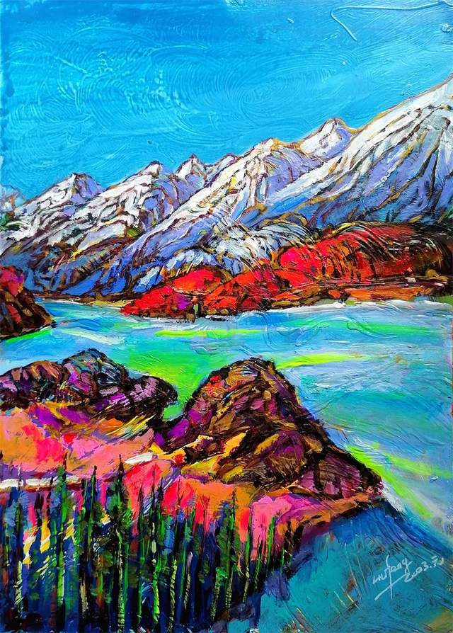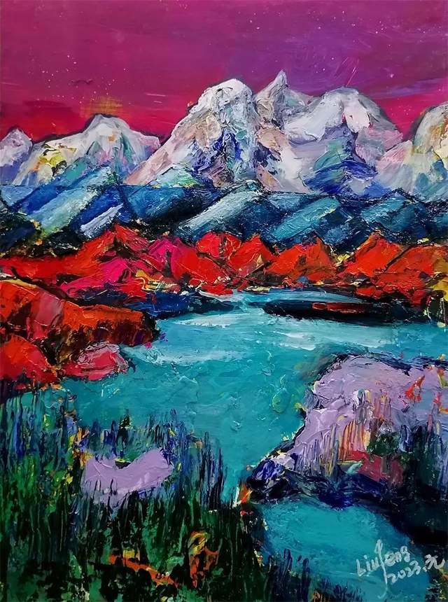 在刘锋的作品中,我们看到了他对自然的大爱、对生活的大爱和对艺术的大爱!不论是国画山水还是花鸟,都能彰显独到的写意情怀和墨色之趣,表现出一种淋漓雄强的笔墨气势。不伦是水彩还是油画,都能在绘画表现时融入自己的真情实感!尤其是他到宁夏支教以来,壮美的西部大山大水触发了他的创作灵感,于是一大批融情于自然情怀的作品便脱颖而出。从苍凉中走向美丽,在艰苦的磨炼中去感受生活的点点滴滴。绘画之事,乃画家之艺能也,持一管之笔,能状写万物之神态。非因山川壮美磅礴之气,草木雨露之华滋养沐浴,方能形成即兴挥洒,写其性灵,拓其胸襟之大雅。