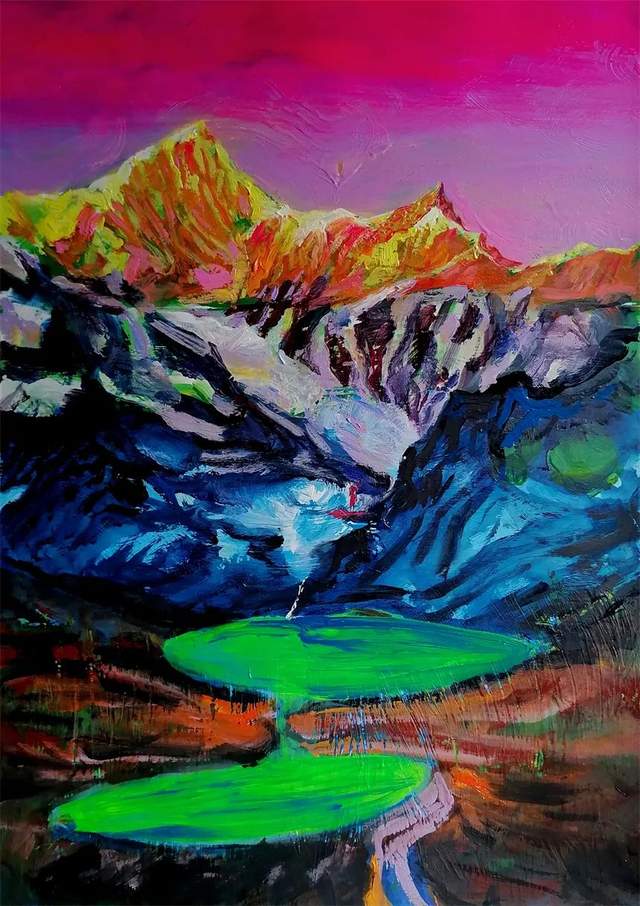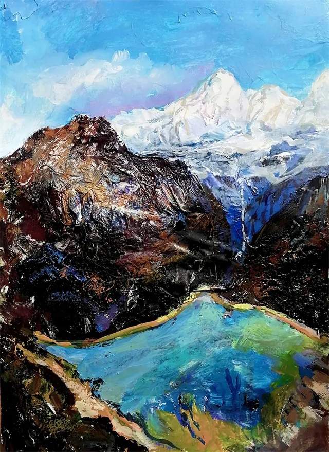 刘锋是一位热爱艺术,勇于探索,勤奋钻研,对于创作有自己独特见解的优秀中青年画家,从其推文上看到许多画作,涵盖水墨、综合材料、油画、水彩等画种;题材既有宁夏当地大山与村落,亦有传统花鸟、闽都坊巷景致等,应该说都是特定时期的观察与表达,更是心境的表露。