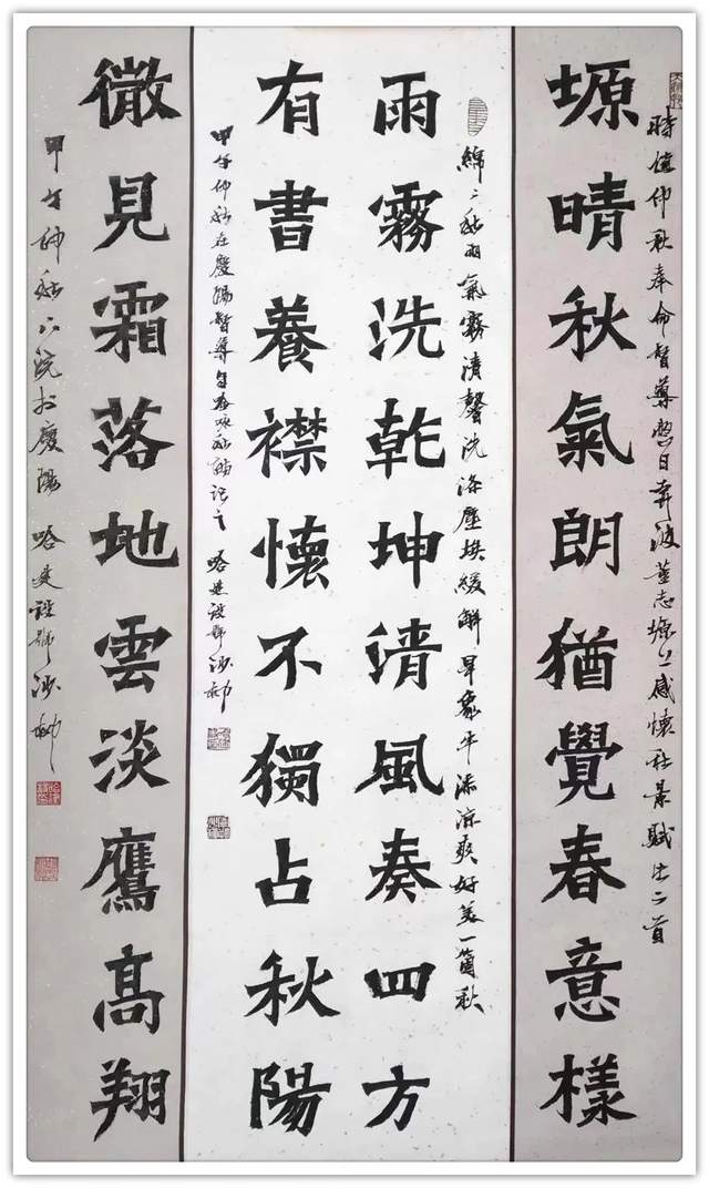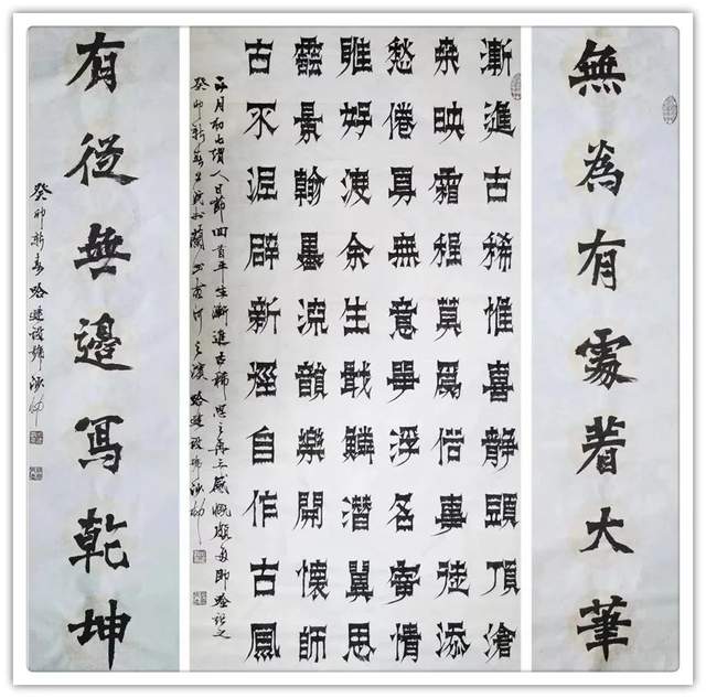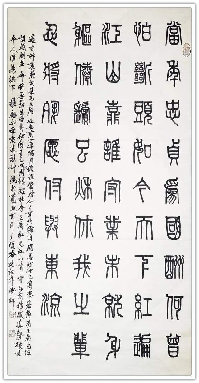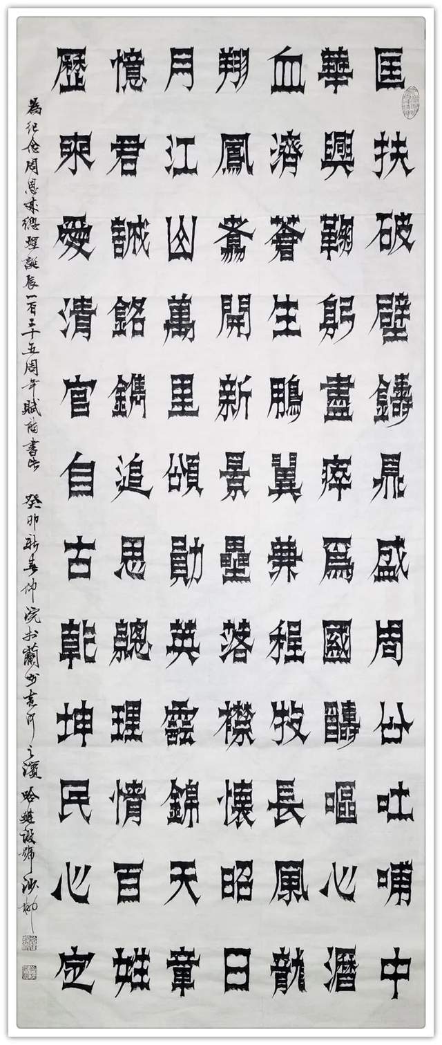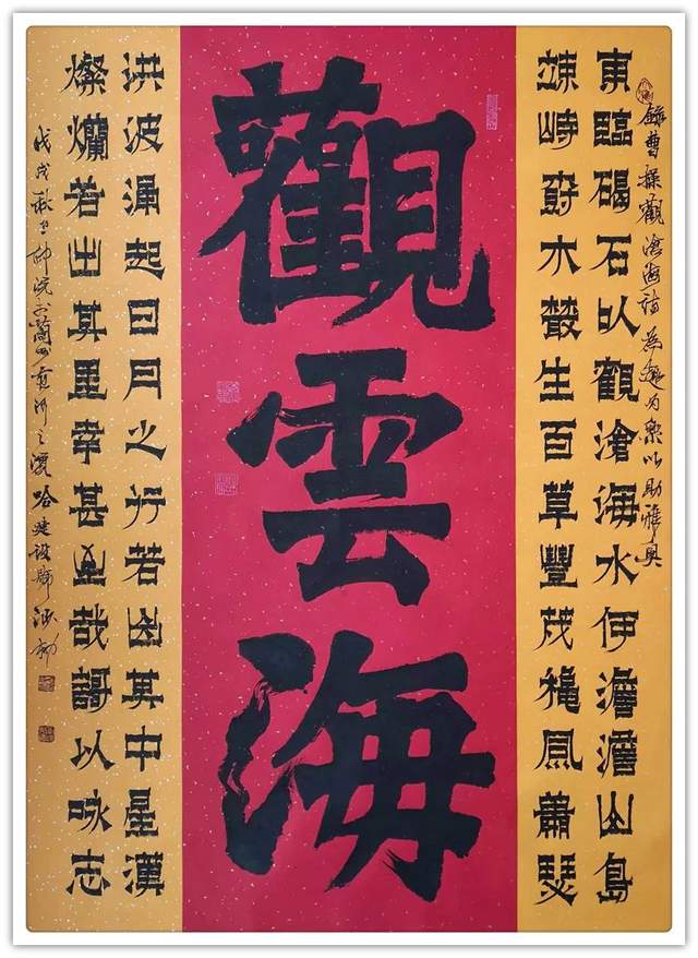 哈建设书法遒正刚决,风骨奇峭,气格凌云,正气逼人也。细究其妙,字恭韵足,多行方饬笔法,且结体严谨,法度井然;功道不俗,笔力遒劲,揽娴熟控笔之能,意如镌石镂玉之势,无真修难达此景,非识者难知其堂奥(节选自人民大学教授、博生导师,国家最具权威评论家陈传席<哈建设书评〉一文)。