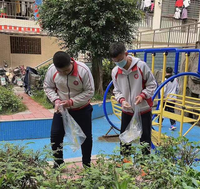 望着干净整洁的小区环境,汗流浃背的同学们却笑了,他们体验到了劳动的收获与奉献的喜悦。