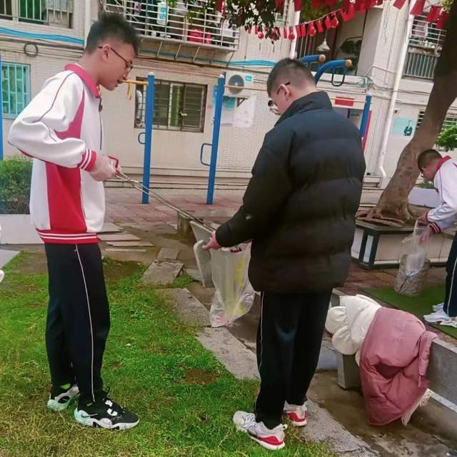 2月12日,晋江市第二中学初二四班学生在华夏家园小区开展社会实践公益活动。通过打扫卫生、清理垃圾、爱护花草等劳动实践体验,加强团队协作精神与奉献理念,培育社会道德与公益意识。