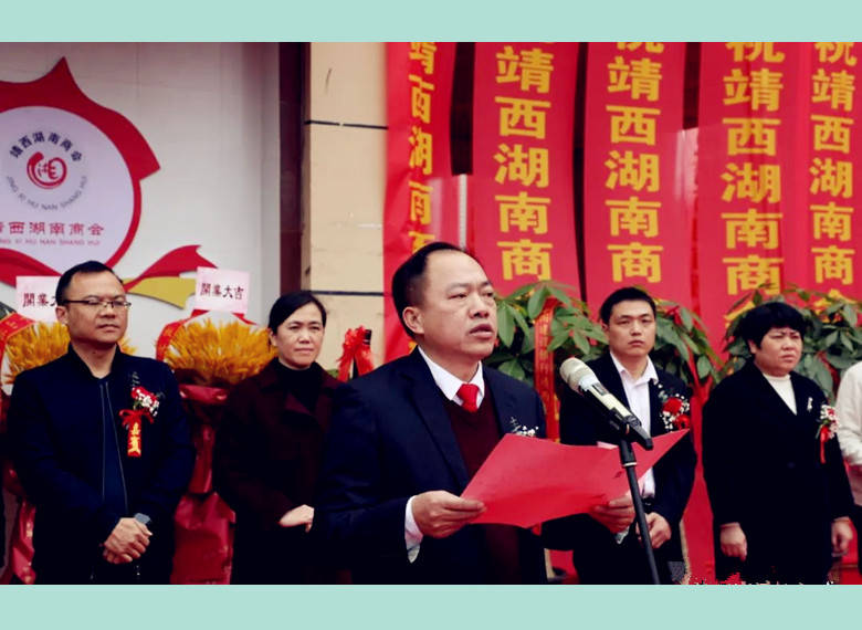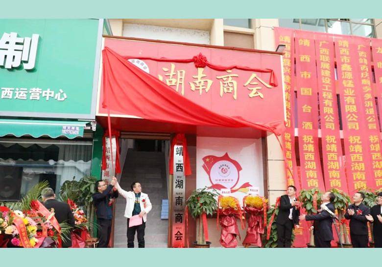2月8日,广西靖西湖南商会举行乔迁办公新址揭牌仪式,靖西市委常委、统战部部长闭鸿飞出席活动,并与湖南商会会长郑向东共同为新址揭牌。