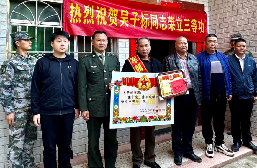 二月送喜报,崇军气氛浓。连日来,龙川县先后为李小东、袁小龙、吴子标3名荣立三等功现役军人家庭送去立功喜报,为光荣之家新春添喜气,进一步弘扬新时代拥军优属光荣传统,激励军人投身国防建设。