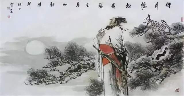 在《醉月图》中,古人喝醉时的神态在明月当空的夜晚下多了一份惬意,画中人物细腻而又微妙的面部表情和周边夜景的陪衬都将一种醉人的形态给艺术地展现。在另一幅写意人物画《养心图》中,一幅画中人物修身养性的神态在身边书简、周围静谧的景象衬托下让其多了一份美感。