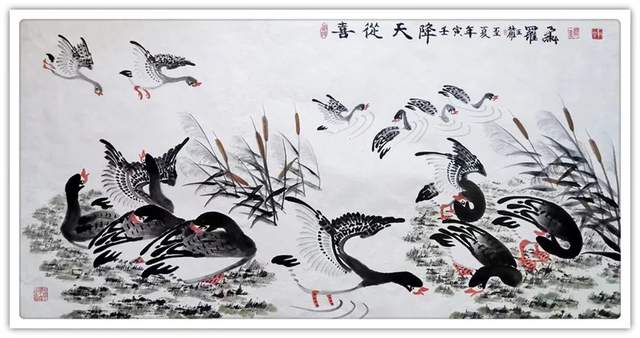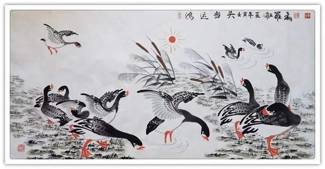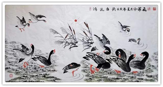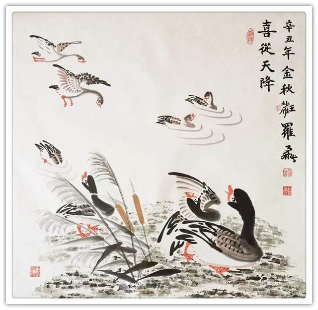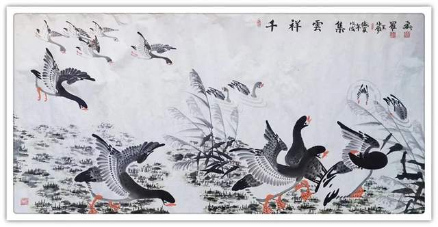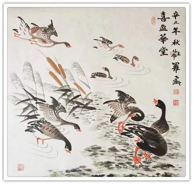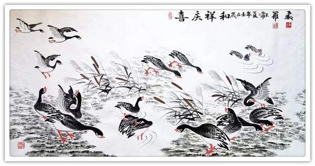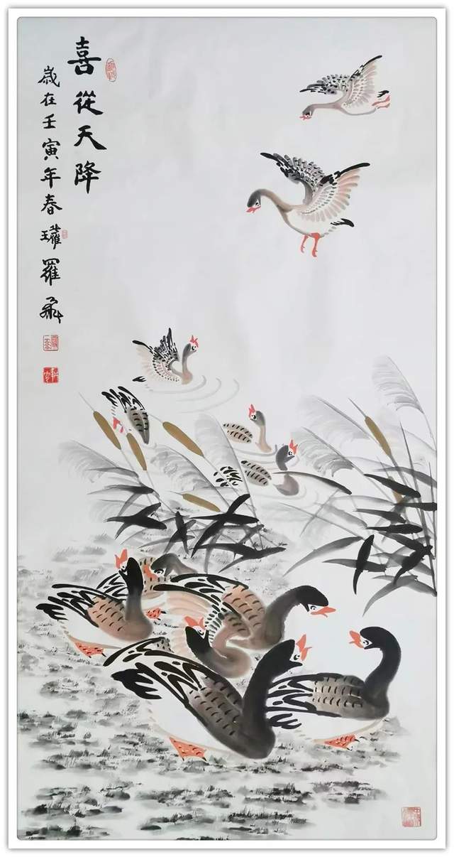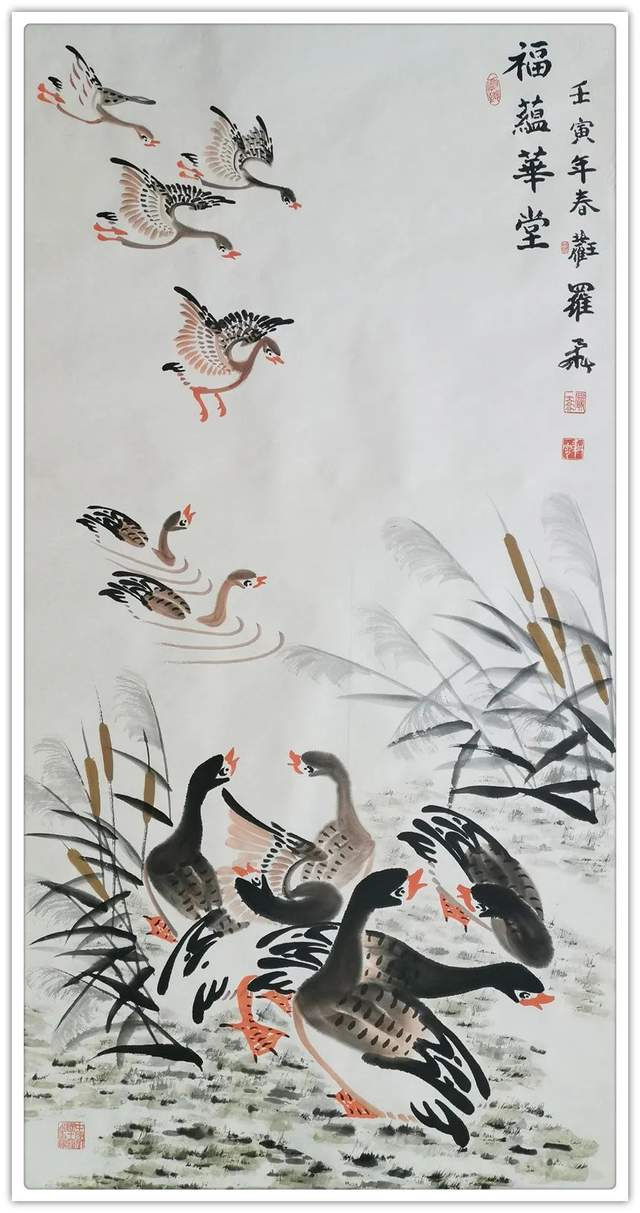 中华人民共和国国宾礼特供艺术家罗维存以专绘鸿雁著称当今画坛,他笔下的鸿雁如仙女下凡神态各异、食宿飞鸣、千姿百态、栩栩如生、神韵十足,表现出极大的生命力。北雁王・罗维存为人处事淡泊名利、重义情深、书生意气,学者风范。他的鸿雁作品让人心旷神怡。