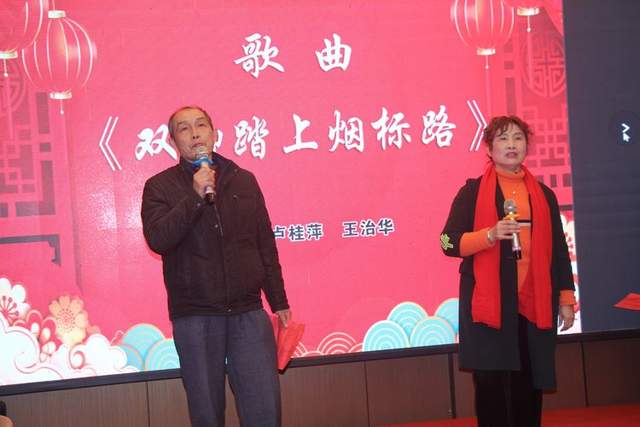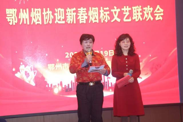 总结大会结束,紧接着迎新春烟标文艺联欢与荣誉颁奖拉开了序幕,只见主持人赵德润先生和涂钢女士闪亮登场。