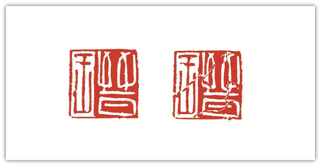 【山筋石脉篆刻法】作品;“晋王”朱白相间印与一般印刻法比较