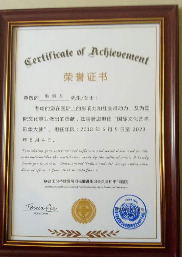 由于在艺术上取得较好成果,2000 年后相继被中国老年书画研究会及世界民族文化交流促进会、中国书画艺术家协会国际美术家协会等分别接纳为会员,以后又被北京九州书画院、香港画院、世界文化艺术研究中心等全国多家艺术单位受聘于顾问、监理、高级研究员、常务院士等职位。还享誉教授、美术师、高级工艺师等职称。2005年被授予“优秀中华文艺家百业杰出人才、百名行业风云人物、创业功勋、功勋艺术家”。06年评为“中国书画名家和评为当代中国书画收藏市场最具收藏价值艺术家”。同时部分作品被中国艺术名家网和富贵网录用,并应中国艺术“北京荣宝斋”之邀举办个人画展。是年被中国名家书画院聘为名誉院长。2009 年获中国艺术名家终身成就奖,同年被聘为“中国当代艺术协会副主席”。2010年被授予“中华人民共和国杰出书画大师”。中国非物质文化遗产领军人物与被聘于中国国家书画院、中国翰林书画艺术院副院长等十几家知名艺术单位任职(兼职)同年由“世纪英才”邀编《当代书画谱》-书。还并与刘大为、沈鹏二位老师同编大型丛书《艺术大师三人行》丛书,由权威出版社公开发行),2012年被授予“感动中国杰出文化传承人”及被推荐“中国艺坛三大家”和“中华五名家”并合成精典出版大型丛书公开发行,2012年春,其书画作品被权威部门鉴定为国宏级艺术品,十几年来每逢被邀参加全国各类型书画大展均以优异的成绩获得大奖。