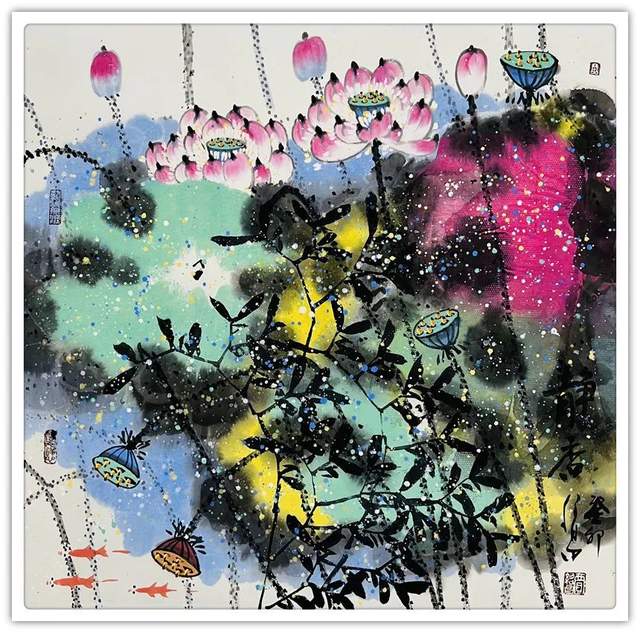 纸本新彩墨大画江南,亘古未有!这里的确需要当随时代的创新力,还需要扎扎实实的笔墨真功夫。当然,这些新彩墨绘江南的必要元素,贾绍昌一样不缺少,所以他新彩墨水乡就显得游刃有余,举重若轻。从大处落笔,于细节里收拾,浑厚华滋不写粗糙,气势浩莽专作精妙!看这些荷映江南白墙的好作品,非常容易让人联想起吴冠中油画诗意江南的那种气象,的确又有着不同的经营路径!用浓墨重彩表达江南妙有诗词意象,这是大汉的精神基因,也是大唐的盛雄观,这也是贾绍昌的壮游江南,心动新彩墨的独特秘籍。