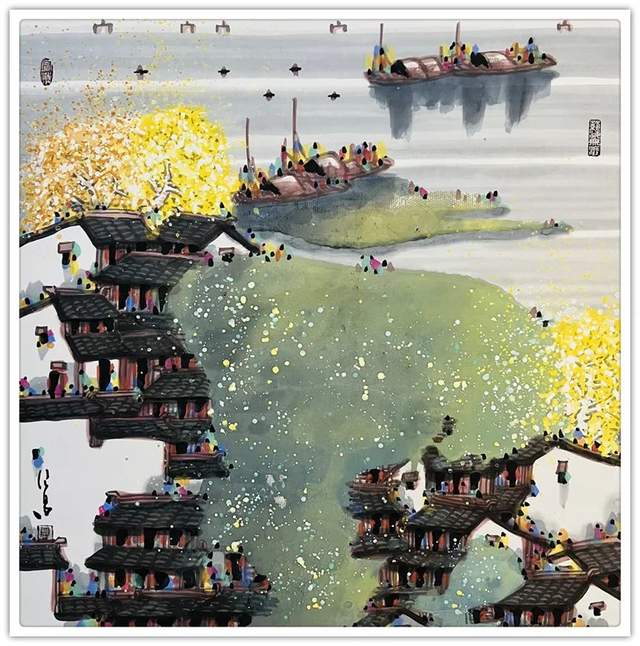 借古开今,层楼更上。他借助这些惟妙的江南新彩墨作品,极大地开拓了中国画的表现形式,也为他在美术创新层面赢得了无量之功!他不但是一位复建新彩墨历史辉煌的专业画家,还是一位有文化弘扬功勋的文化人物!所作华滋江南,是观赏的佳作,也是收藏的珍品。挥笔绘龙脉,古今永传!