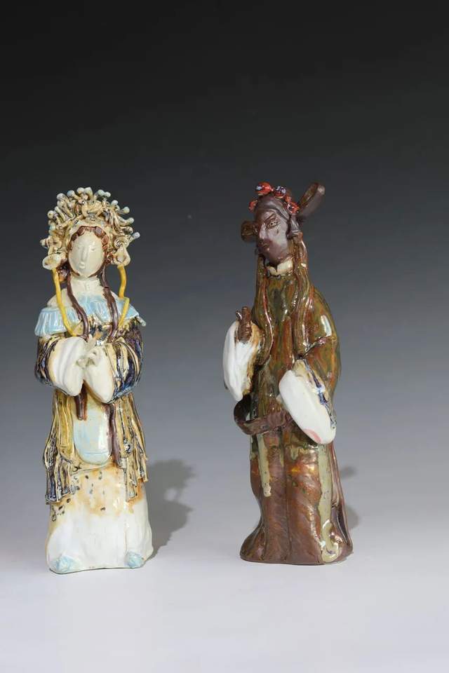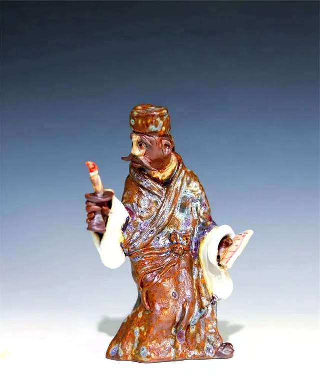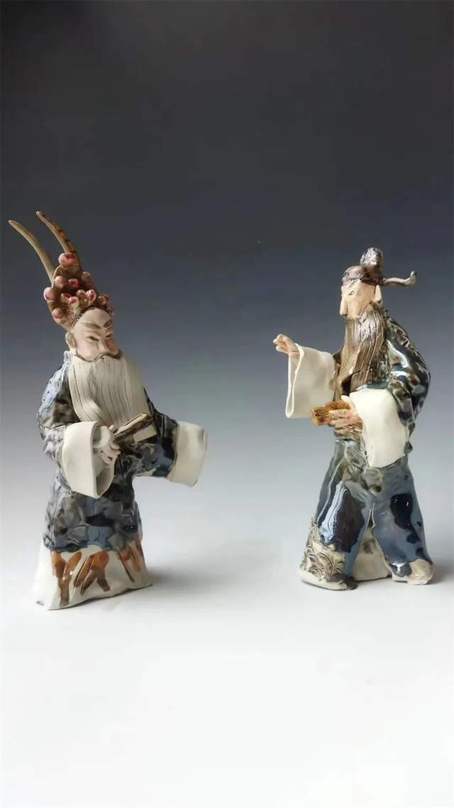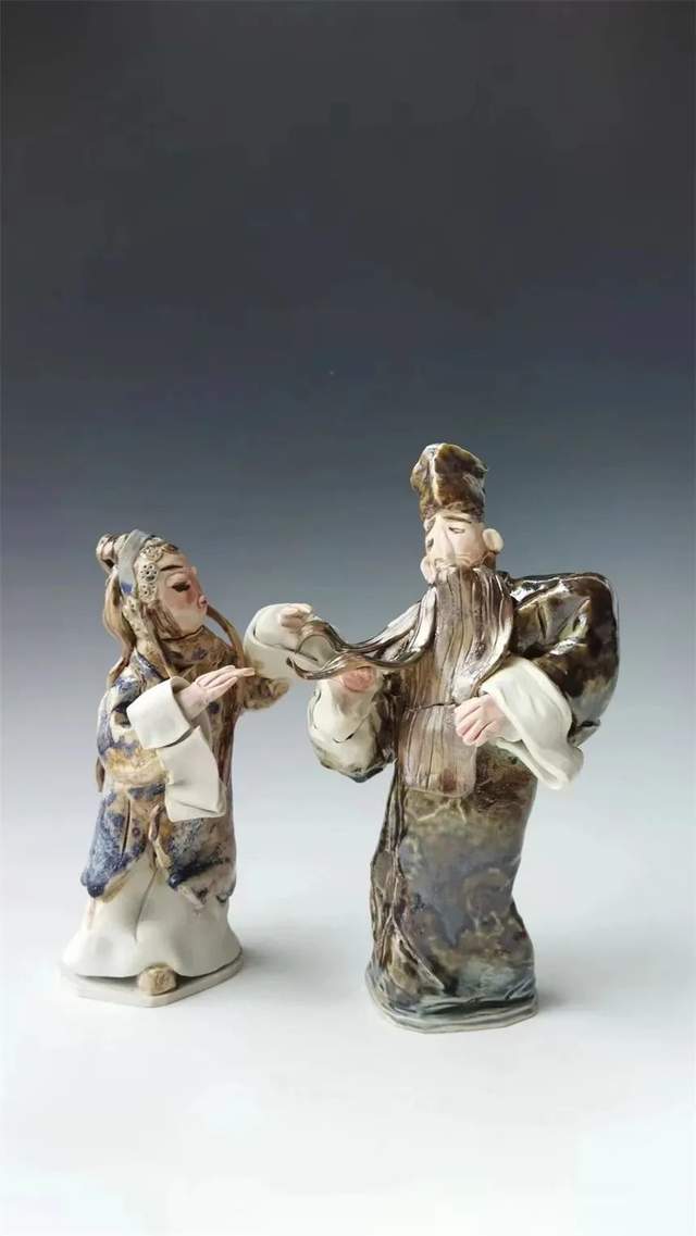 近年却痴迷了中国戏剧国粹、京剧、本土乐平腔,赣剧文化艺术,运用了独特的陶瓷艺术语言——捏塑,巧妙的以捏塑泥韵技法、渗透到有温度有内涵的戏剧表演艺术形象中去,展现出静中有动的戏剧人物陶瓷雕塑魅力。