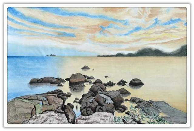伴随着三年多的疫情,也成就了这批《海之恋》作品的完成。正象我们深爱的大海,有时候并不是表面上看起来的那样平和、美丽,有的地方已被人类以前所未有的速度污染不堪。各国环保专家及环保人士对此大声疾呼似乎也无济于事。现在海洋污染已经波及到了你我他的生存,必须引起高度重视。惟愿以海入画的每幅作品,能提醒人们珍爱海洋、保护自然,给子孙后代留下这片湛蓝清澈的大海!阎淑琴老师的绘画作品,主题突出,构图严谨,颜色淡雅,意境深远,是一位非常有潜力的艺术家。
