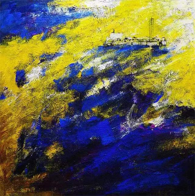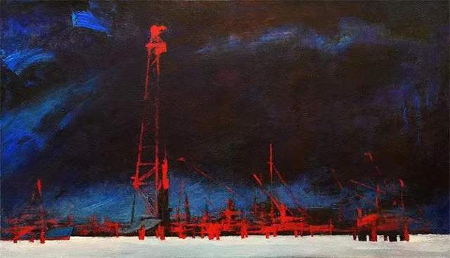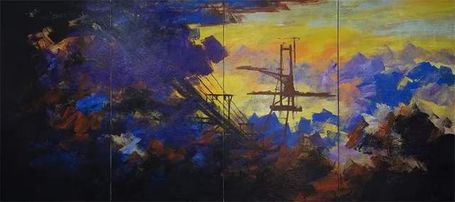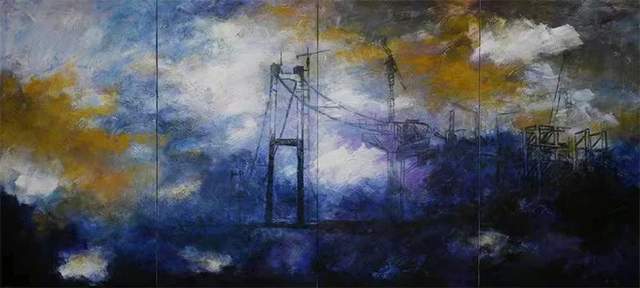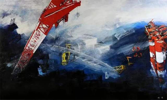 油画《施工中的港珠澳大桥》2018年珠海古元美术馆收藏