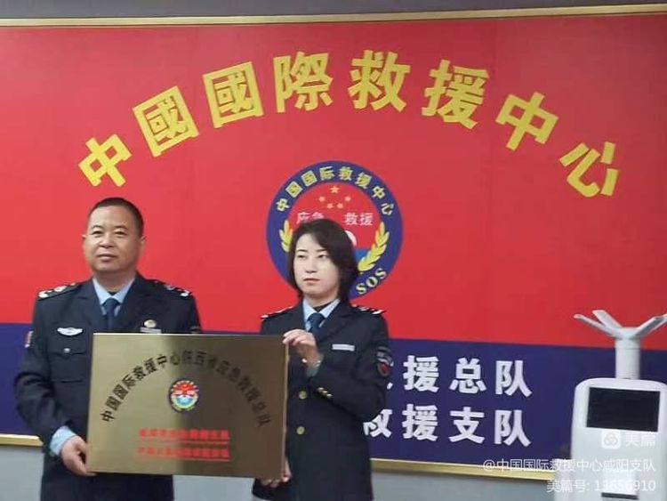总部副主席总督察长田宝勋,向咸阳应急救援支队,中昌应急救援志愿者大队授牌。