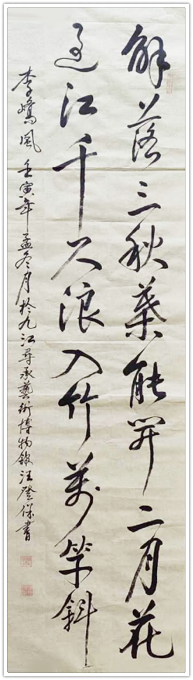 汪登保,祖籍安徽庐江,1952年出生宿松县洲头乡。工作于九江市,原九江市政协常委。现任九江寻承艺术博物馆馆长。