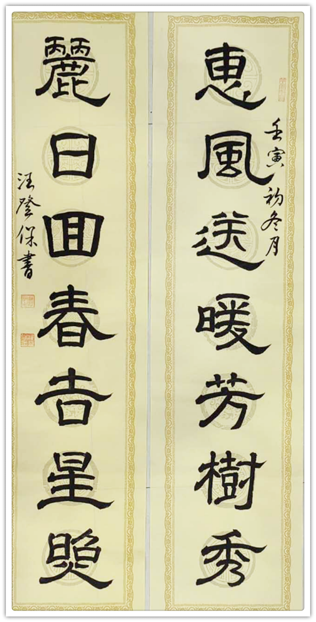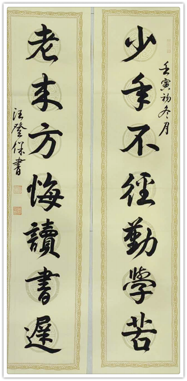 近几年,汪登保的书法作品,由中国邮政出版发行百年献礼珍藏邮册艺术家卷《百年百家一汪登保》。中国文化报道,2021年聚焦全国“两会”,我把艺术献给党两会专刊《中国著名书法家一汪登保》。庆祝建党100周年出版发行《党旗下的功勋人物》《中国艺坛五大家》《当代功勋艺术家一汪登保》《艺术大家时代领袖一孙晓云、汪登保》等。庆祝建国70周年,由中国文化报道、新媒体组委会出版发行《人民功勋艺术家一中国著名书法家汪登保》。多年来,作品入编《当代美朮史一中国书法》《中国书法年鉴》《中国当代书法史》《人民美术》《中国美术》《中国收藏》《中国书画教材》等60多部官方权威书集及《人民日报》《人民政协报》《人民画报》《中国书画报》《民族书画家报》等多权威报刋登。新媒体联盟有千家权威官方网络播放。