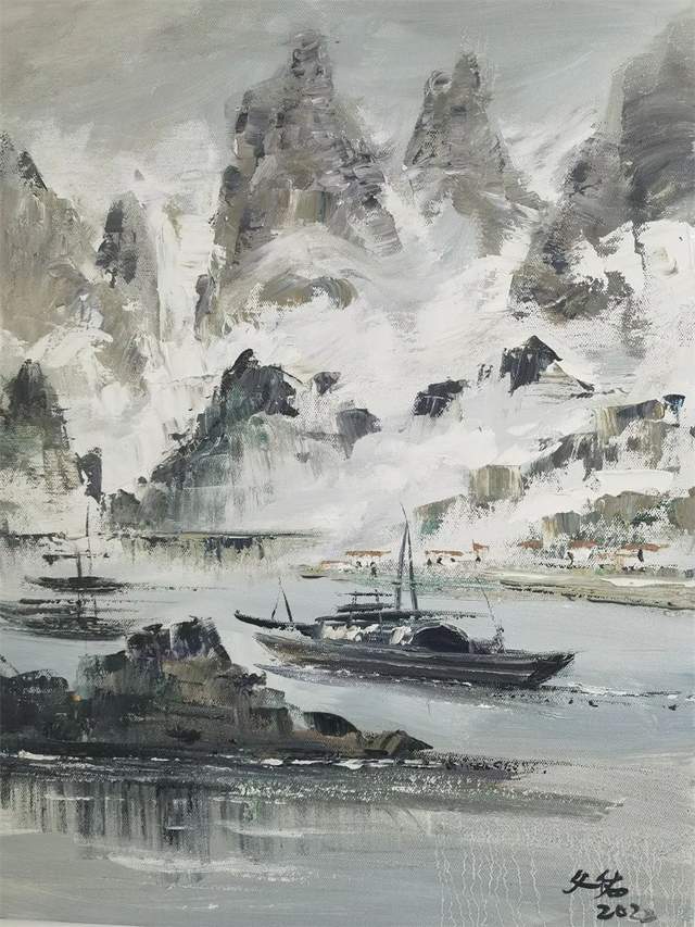 《漓江烟雨》黄文佑,45×65厘米,2022年