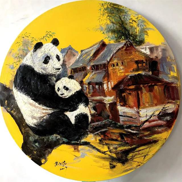 《国宝家园》之一,100×100厘米,(中国人民银行熊猫金币发行30周年)展入选作品