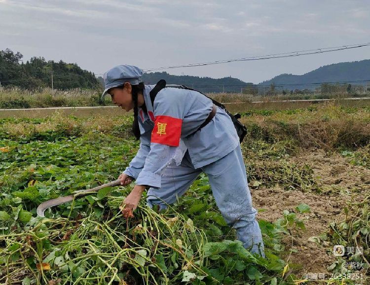 2021年11月,紫秋在湖北通山革命老区参加帮扶贫困户挖红薯志愿服务(摄影/通山政协委员金宝珠)