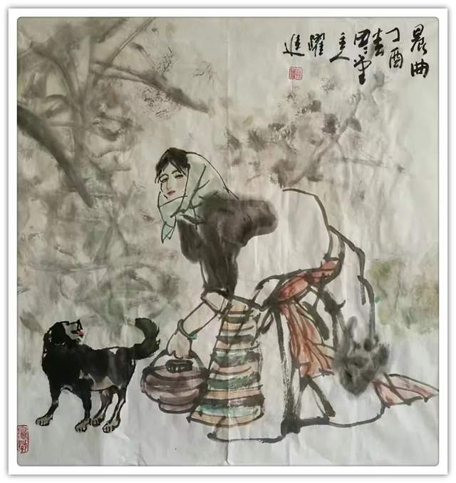 孙跃进先生精心研习书画艺术,无俗利之逐取,无虛名之追求,亦不以绘画而谋生活,所以他的丹青修炼,完全是出于修身养性,陶冶情操的目的。目的纯粹,画风超脱。纵观他的绘画作品,无一例外,都显发着丹青无挂碍,清许质如泉的透彻与明净。他毕业于中央美术学院徐悲鸿画院研修班,有着深厚的笔墨理论涵养,所以对外师造化中得心源法则理解特别深刻,实践特别执着。观人物姿态,心穷万物之源,不但是他的艺术目标,也是一-场永无止境的丹青修行。他能沟通心源与造化的双向对流,别人熟视无睹的人物景象,可以成为他描述人物造意的心灵感触。
