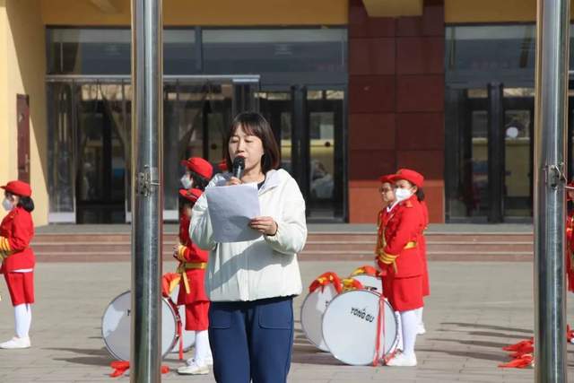 少先队辅导员王红艳老师在国旗下号召同学们传承和弘扬雷锋精神,以真诚、无私、勤奋、奉献和拼搏的雷锋精神为指引,争做雷锋式好少年。