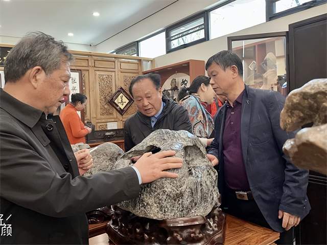 “趣天成奇石馆”位于东西湖临空港大道五号驿站,是东西湖区收藏协会副会长杨建元个人建立的藏品馆,馆内各种石头千姿百态,形状各异,充分展现了大自然造物的巧夺天工,在下午的参观过程中,藏友们面对这些精美的石头,爱不释手,在大大小小的奇石间穿流不息,流连忘返。