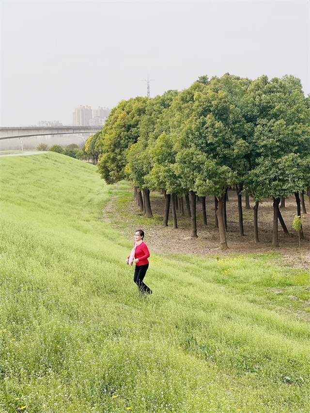 沿着汉水大堤人们一边走一边欣赏汉江风光,成片的杉树挺拔高扬,路边的蒲公英花格外鲜艳,暖暖的春风拂过脸颊,送来一阵阵花儿的清香。风和日丽,煦暖舒适,出外游玩,心爽惬意。