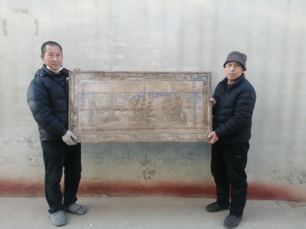 河北省隆尧县北楼乡尚礼村村民在展示岁进士木匾。