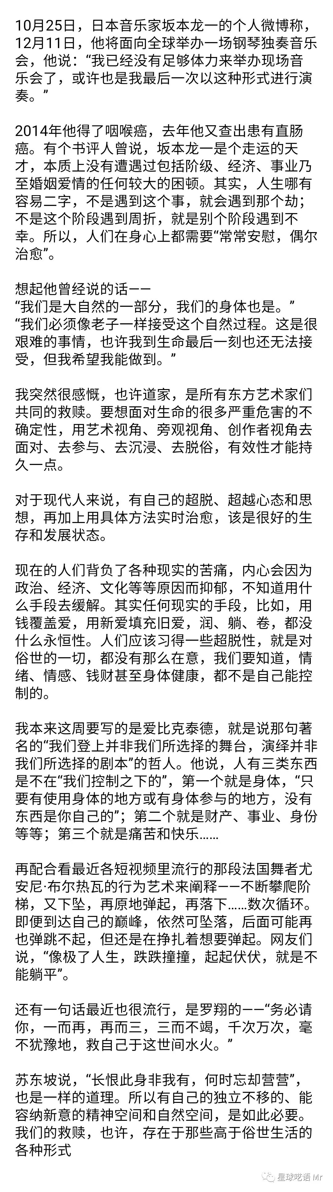 于是,某天早晨,我听着坂本龙一的音乐,开始阅读他的很多资料,然后边看边写,这就是我的一种写作生活叙事。