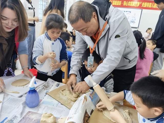 本次活动,特别邀请了厦门市工艺美术大师、福建省雕塑大师王鹭鹰,主持本次精彩的公益课堂“闽南古厝·我们的家”,培训孩子们用陶泥制作自己心目中的家园。在王鹭鹰的细心解说与反复教导下,两个学校的小朋友们在一起共同学习陶艺制作方法,感悟“创意在指尖上流淌、幸福在泥塑中徜徉”的艺术情趣。