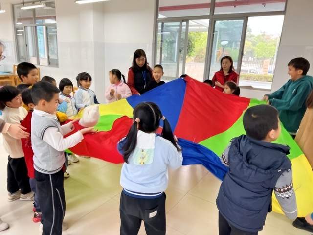 接着,两个学校的孩子们又聚在一起做游戏,共同体验欢乐彩虹伞的活动乐趣。孩子们的欢笑声,在蓝天下久久回响;孩子们的情谊,在玩乐中悄悄滋长。
