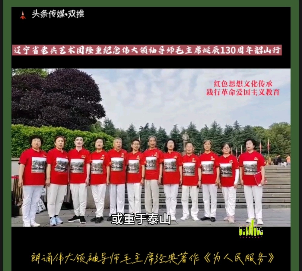🫂 辽宁省老兵艺术团隆重纪念伟大领袖导师毛主席诞辰130周年韶山行中朗诵伟大领袖导师毛主席经典著作《为人民服务》宣传片视频🖕🏽