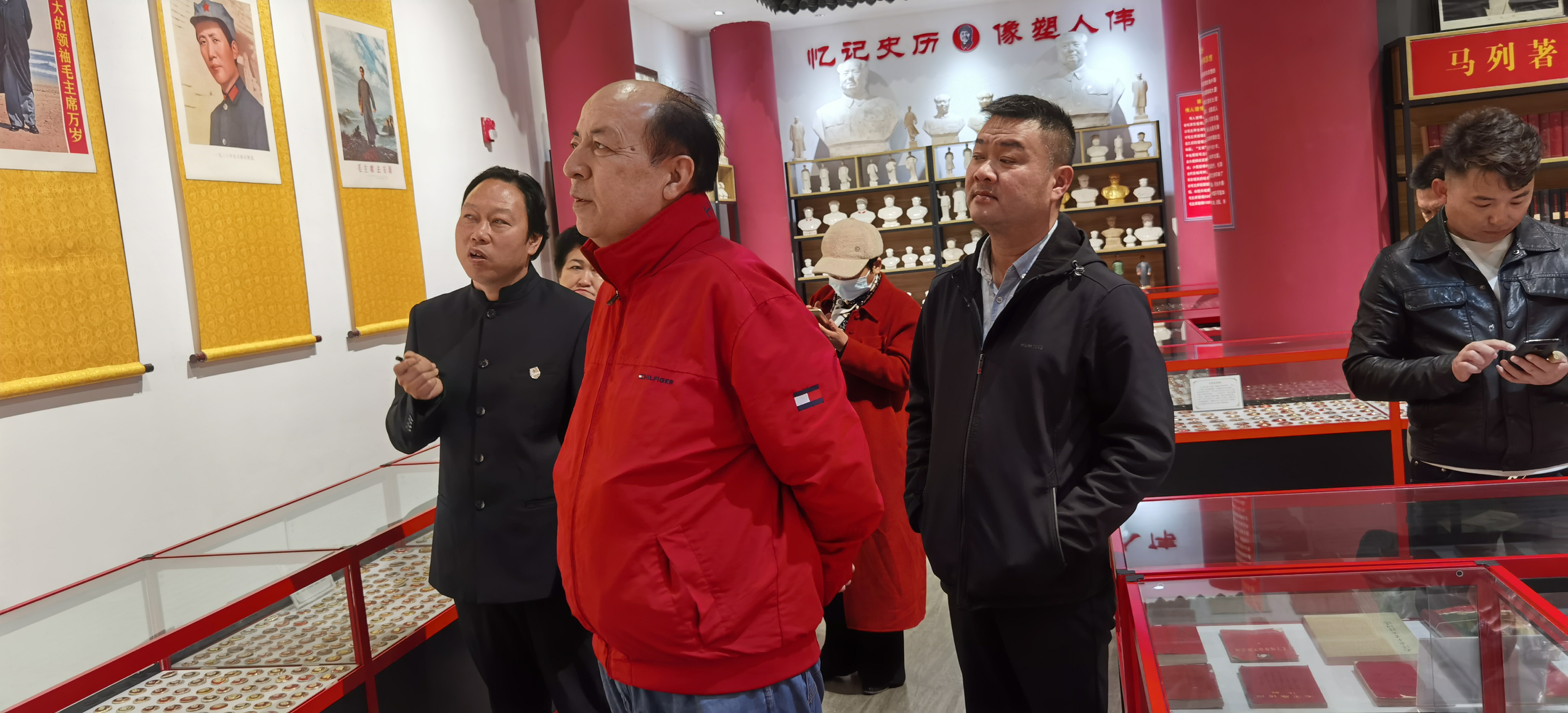 姚真保馆长向远方客人详细介绍了该馆的建馆背景、展馆设计、藏品布展、红色文物的来源,以及2021年7月1日开馆以来的情况,讲述了自己20多年来跑遍全国各地收藏红色文物的概况,逐一讲解该馆各部分的藏品情况。