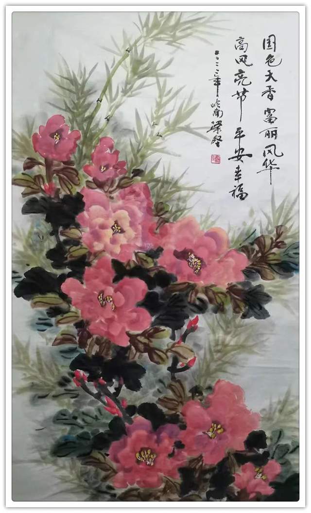 岭南派画家梁坚,一九三八年生,广东新兴人。一九五七年毕业于广州教师进修学院美术专业,师承赵崇正、李云、黄笃维、潘鹤等,能画水彩,会做雕塑,擅长中国画。一九八零年加入广东美术家协会。二零零四年加入中国国画家协会。现为江门市政协书画院画家。曾获广东省南粤优秀教师特等奖,是广东特级美术教师,新会市名教师。作品刊入《20世纪掇英大画册》、《全国教师优秀作品集》、《东方书画长城巨卷》、《中国写作品选集》《中国美术选集》、《中国美术家》 ,《美术大观》被新加坡李光前博物馆收藏,先后于国内新会,广州、台湾和新加坡举办个人画展。出版有《梁坚画刊》、《梁坚中国画集》、《梁坚作品集》,《梁坚花鸟画明信片集》。一九九六年创办梁坚画苑,教授学生,培育人才:并坚持深入生活,努力创作。以高尚的师德风范和精湛的教法培育学生。作品形式多样,既有气势磅礴的长卷巨构。又有潇酒灵动的小品。作品取材广泛,构思新颖,生活气息浓郁,用笔稳健沉实而又洒脱流畅,用墨干湿变化,虚实相生,色彩富丽高雅,格调清新。极具岭南画派之特色及时代精神。