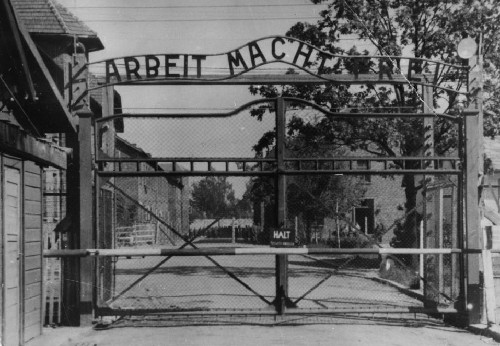 ▲奥斯维辛集中营大门,标语“努力工作会许你自由。”