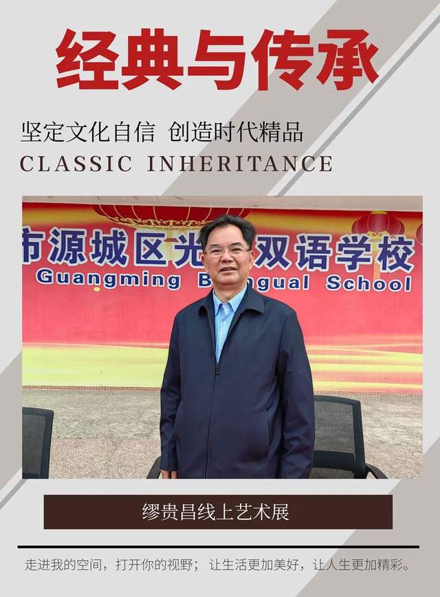 缪贵昌,男,1962年出生,广东省东源县人,河源市光明学校副理事长、校长、党支部书记、南粵优秀教育工作者,广东省书法家协会会员,广东省文艺志愿者先进个人,河源日报社特聘书法家,河源市书法家协会主席。