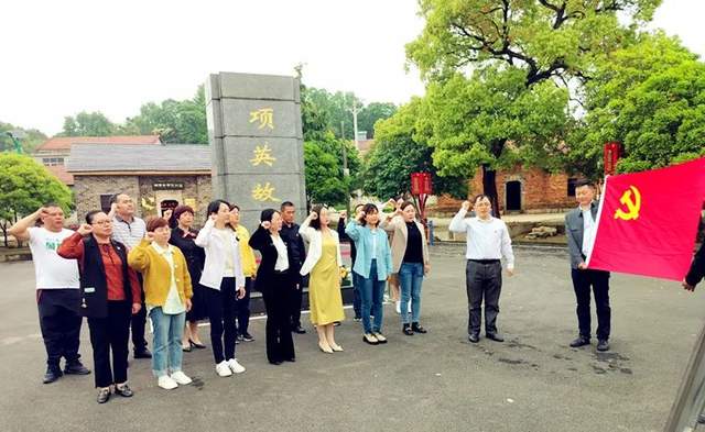 参观结束后,在鲜红的党旗下,大家高举右手,重温入党誓词,向革命烈士表达无限敬意与哀思。
