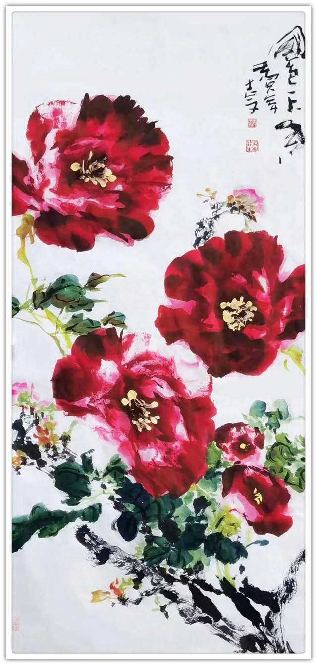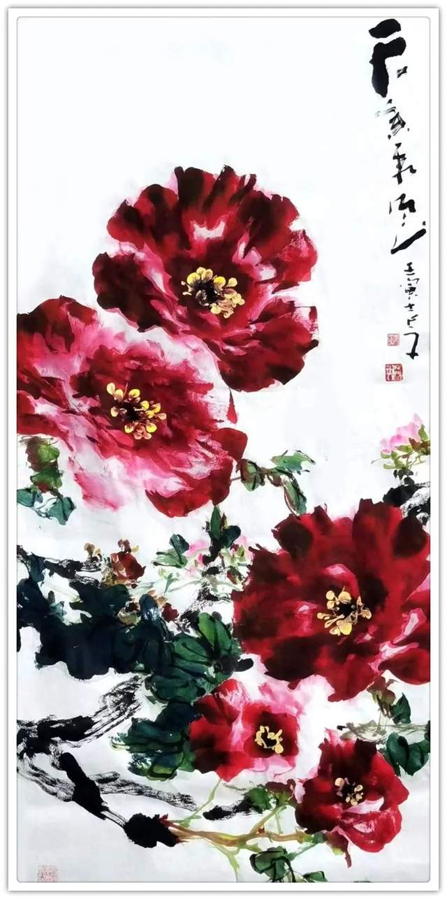 2001年《华夏牡丹图》被列为十六大献礼作品。2004年,在广州大型名家书画艺术品交流会上500米牡丹大卷艳惊羊城,4月《华厦牡丹图》被列为中国牡丹博物馆开馆大礼,作者应邀参加开幕,并被中央电视台、中央人民广播电台、新华社、人民网、中新网、中国台湾网等权威媒体誉为世界第一牡丹画家。